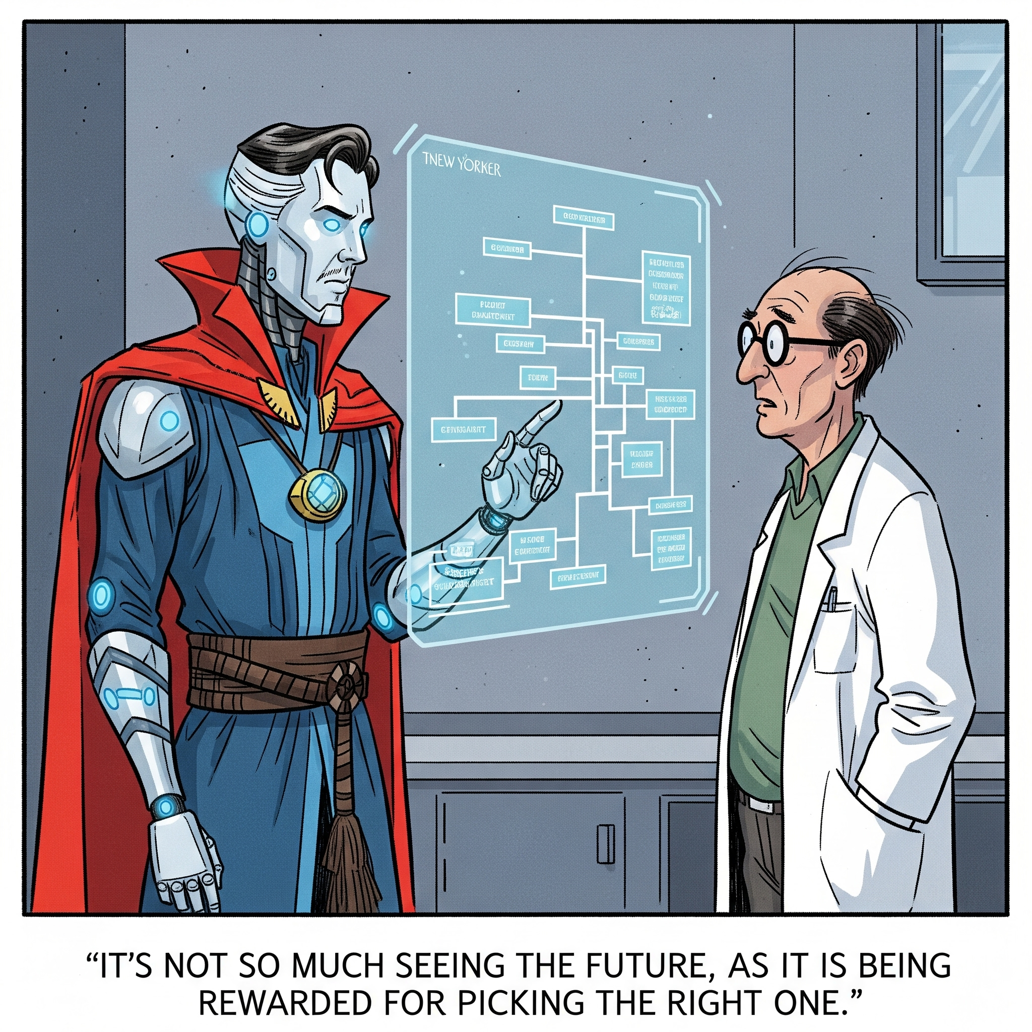 From a technological standpoint, we may not be there yet, but powerful techniques to "fine-tune" (that is, improve for specific tasks) existing models have emerged in the last couple of years. Reinforcement learning techniques, for instance, are methods that allow us to "educate" our models by rewarding them when they behave as expected. We place them in front of various choices, "rewarding" them for good decisions and "punishing" them for poor ones. Imagine a "Doctor Strange" AI model that could envision and learn from every possible near-future scenario to optimize its decision-making. I don't see this as an unforeseeable future.